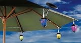 Instant "mood lighting" for your patio! Westinghouse Solar Umbrella Light System. Now, enjoy BIG SAVINGS! Color-changing Lights from Westinghouse offer a soft, ambient glow, courtesy of the sun. No batteries required! Plus, thanks to amorphous panel technology, they'll fully charge even on a cloudy day. Here, you get a 36' strand of 8 Lights, perfect for your patio, umbrella, porch, the campsite or anywhere else you want to create a nice atmosphere. More: 8 Lights each have 1 white LED and 1 spectrum LED. Can shine with solid white light, or turn soft hues of red, orange, blue and green; Auto on at dusk / off at dawn; Runs up to 10 hours on full charge; Remote control and AAA batteries included; Durable plastic construction; Each Light measures 4 1/2 x 5 3/4"h.; Strand is 36' long total. The price is right on this Close-Out deal... order now! Westinghouse Solar Umbrella Light System